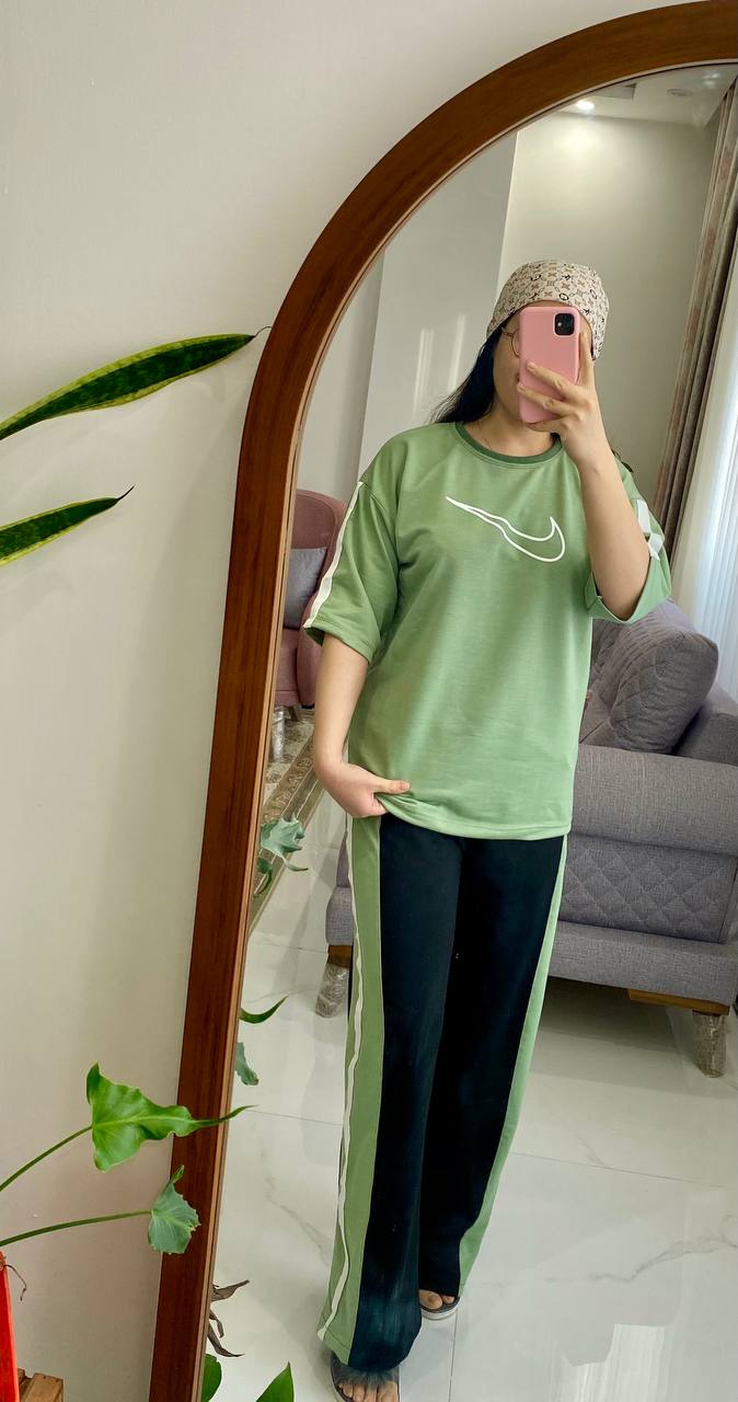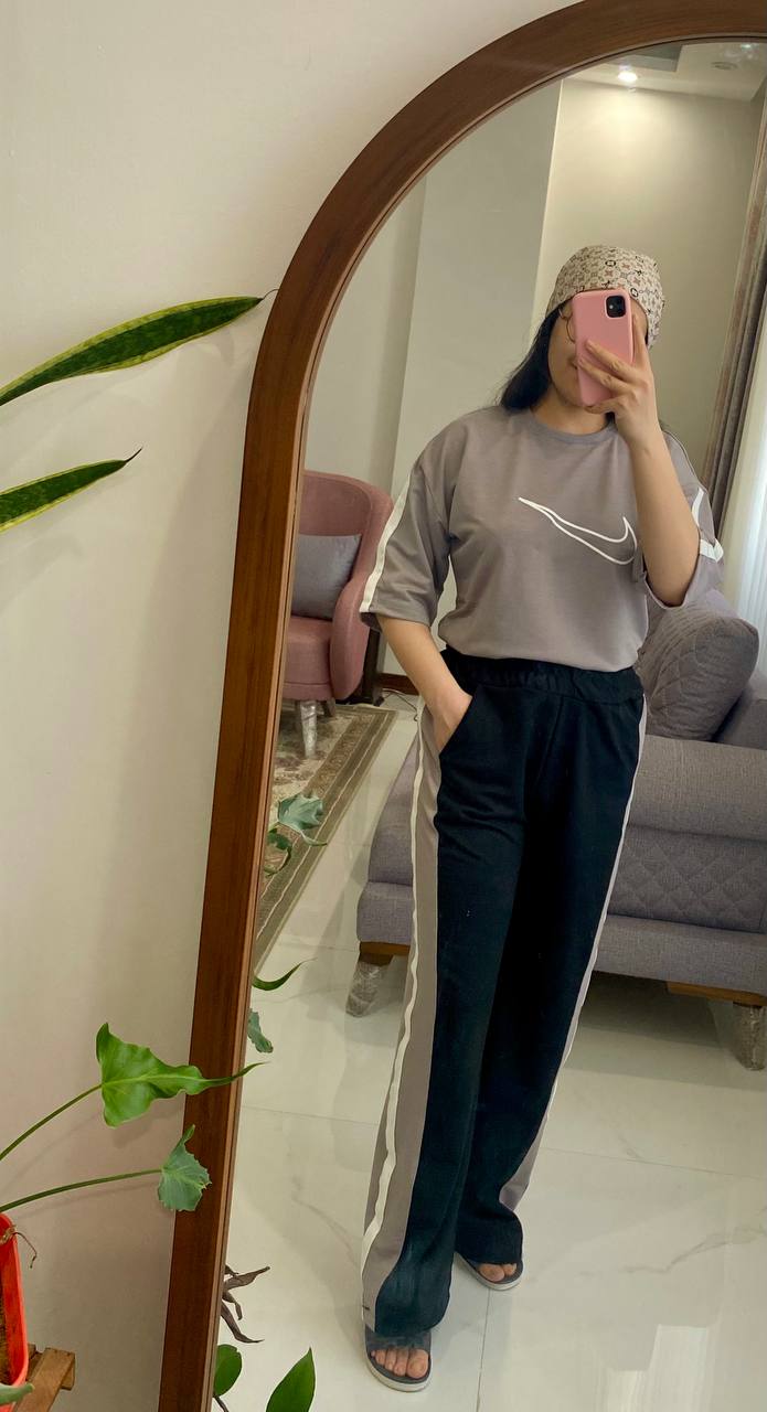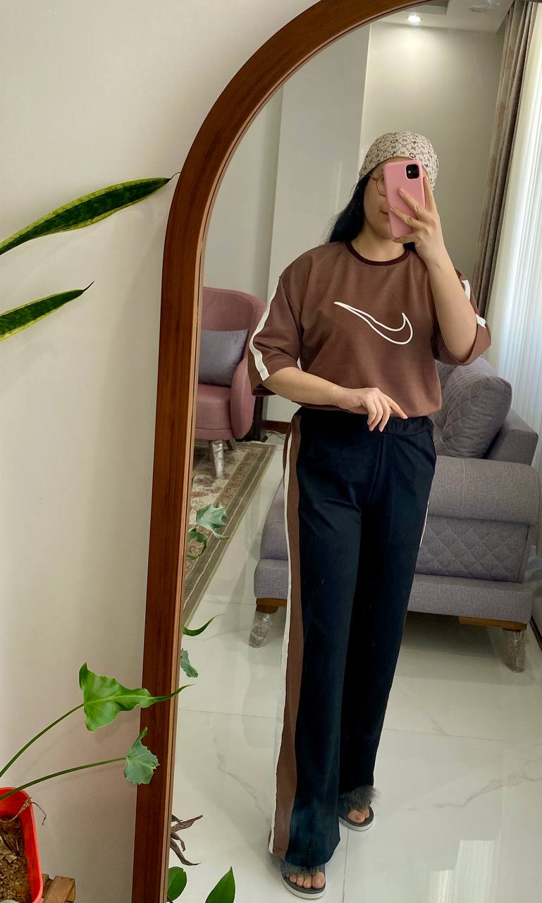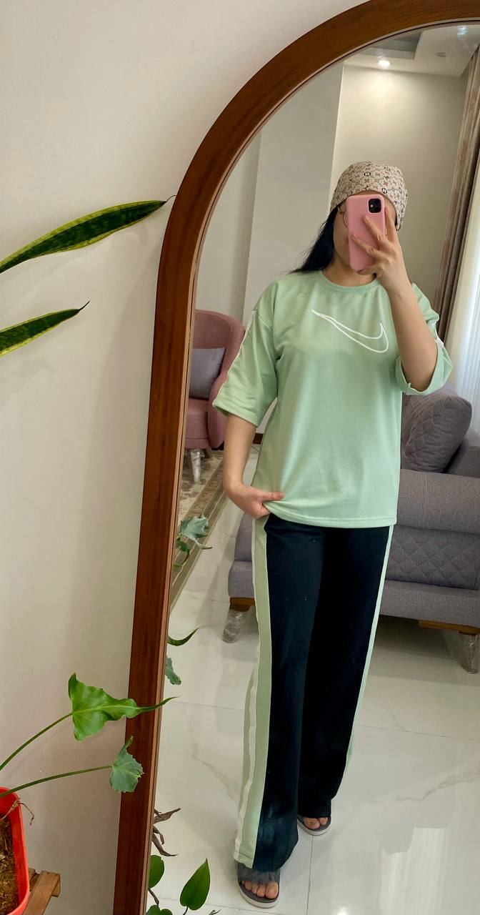 دستهبندی: ست راحتیعرض سینه: ۱۰۸ با کشسانی ۱۲۵قد تیشرت: ۶۸ سانتقد آستین از کنار یقه: ۴۸ سانتدور باسن: با کشسانی ۱۳۰ سانتدور ران : ۶۰ با کشسانی ۷۲ سانتسایز : فری سایز تا۴۶دور کمر : ۷۲ با کشسانی ۱۱۵فاق : ۳۳سانتقد شلوار : ۱۰۰سانتنمایش بیشتر