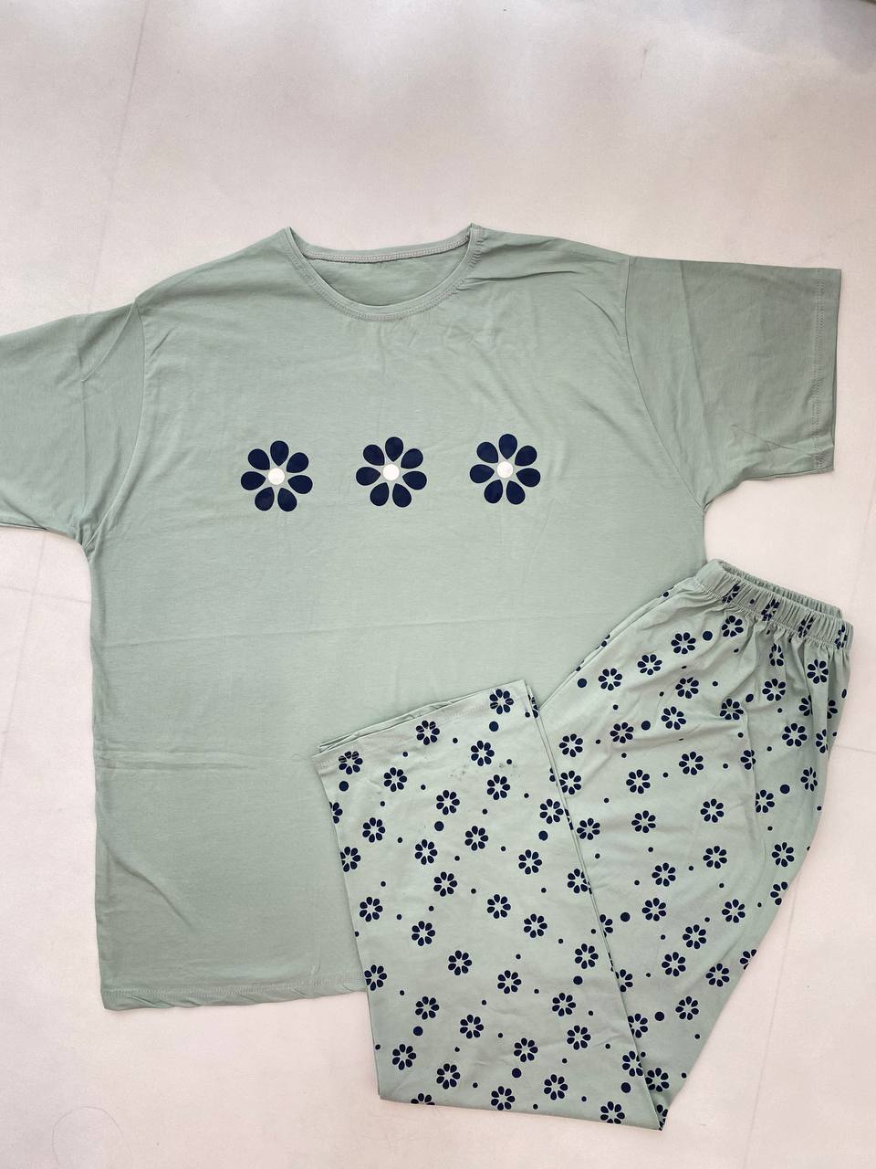 دستهبندی: ست راحتیجنس: تیشرت و شلوار نخ پنبه ۱۰۰٪ بسیار با کیفیت شلوار مرغک داردعرض سینه: ۱۲۵ با کشسانی ۱۵۰قد تیشرت: ۷۵سانتقد آستین از کنار یقه: ۴۰ سانتقد شلوار : ۱۰۰سانتفاق : ۳۷ سانتدور ران : ۶۶ با کشسانی ۸۰ سانتدور کمر : ۶۴ باکشسانی۱۳۰ سانتدور باسن : با کشسانی تا ۱۵۰ سانتنمایش بیشتر